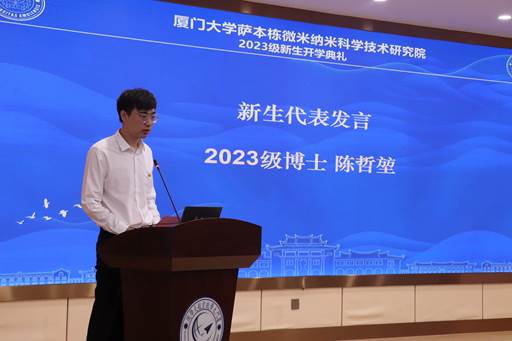 2023级博士陈哲堃作为新生代表发言,他表示今后自己将努力学习传承厦大的“四种精神”,追随前辈的脚步,刻苦学习、认真钻研、勇于开拓、不断创新,为微纳制造与智能制造事业贡献属于自己的一份力量。