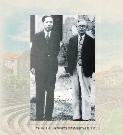 萨本栋(左)、陈嘉庚(右)合影于1940年11月,长汀