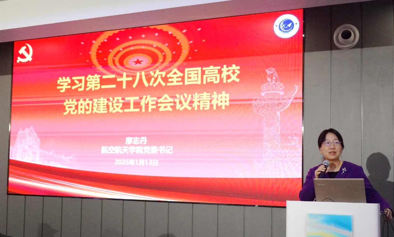廖志丹书记带领大家一起学习了第二十八次全国高校党的建设工作会议精神、2025年全国教育工作会议精神。随后她代表院党委作“党建领航温暖集体建设”报告。2024年,院党委带领全院师生紧扣“党的领导”根本点、把握“理论武装”关键点、抓好“师生团结”着力点、找准“一融双高”落脚点,以高质量党建推动研究院高质量发展。在新的一年里,希望通过“改革自强、温暖续航”,为回答好“强国建设,萨院何为”的奋进课题书写好属于厦大工科的“温暖”答卷。