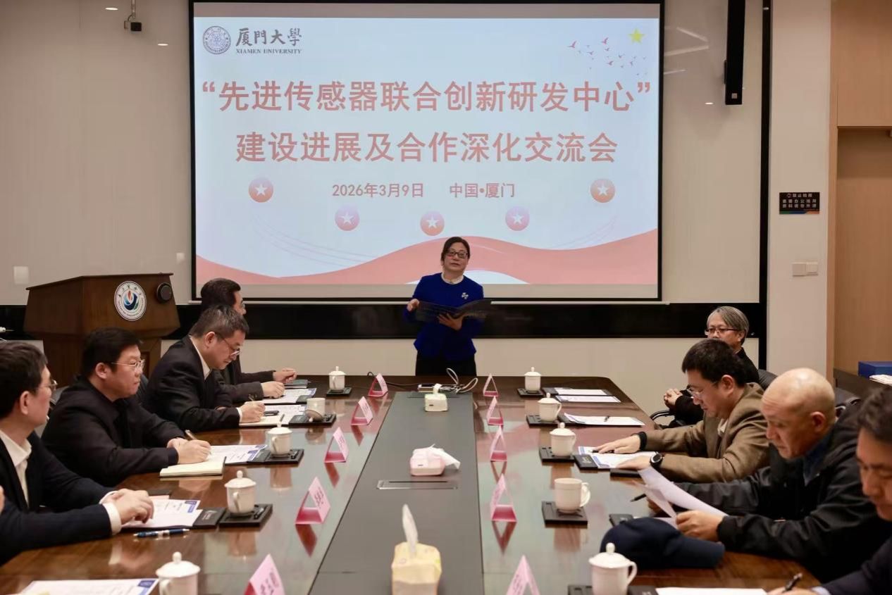 春潮涌动启新程,协同并进谋发展。2026年3月9日,航天九院原副院长李艳华、北京遥测技术研究所所长孙甲琦、副所长彭泳卿率研究所专家团队一行到访厦门大学萨本栋微米纳米科学技术研究院,围绕先进传感器技术研发、校所深度合作等主题开展交流研讨,共绘协同创新发展新篇章。厦门大学副校长尤延铖代表厦门大学致欢迎辞,翔安校区管理委员会副主任杨旸出席会议,研究院孙道恒、祝青园、王凌云等教授及相关骨干教师共同参与交流;副院长王敏主持会议。