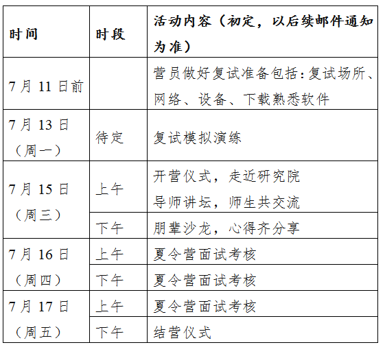 3.营员须全程参加夏令营活动,不得中途或提前退出。中途或提前退出,复试考核无效。