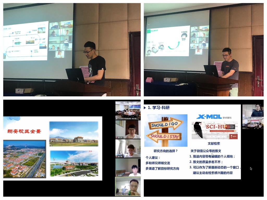 7月15日下午,夏令营开展朋辈沙龙活动。研究院选派2016级博士研究生张杰、2017级硕士研究生彭胡、2018级博士研究生杨隆凯、2018级博士研究生陈睿豪等4位学生代表分别就研究生学习、科研生活等方面的经验进行分享,内容涵盖厦门大学思明校区和翔安校区人文环境、科研学术规划、科研文献写作技巧、出国申请、求职就业、研究生日常生活等,分享话题紧贴营员关注的研究生生活点滴,引起线上营员浓厚兴趣;营员们踊跃提问,研究院学生代表通过分享个人心路历程为营员们答疑解惑,鼓励营员不要轻易给自己设限,学会转变思路,做好文献调研,与导师保持积极交流,勇于挑战不同领域的研究。