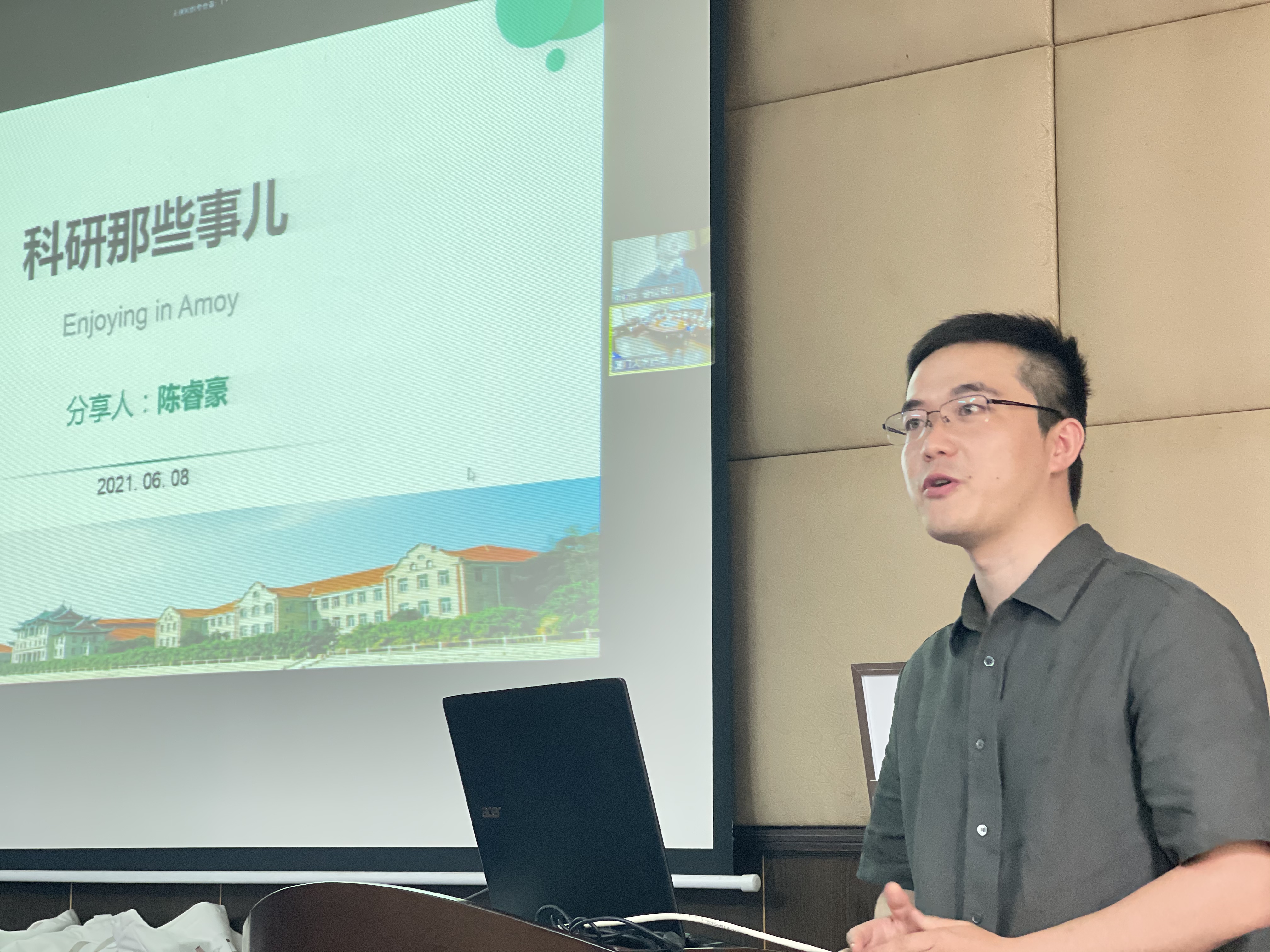 “学术之星”陈睿豪同学主要从科研方面介绍了自己的经验和心得,作为我院历史上第一位提前一年毕业的博士生,陈睿豪同学从如何阅读、管理文献到如何写一篇论文、如何作图、如何汇报等细节问题都毫无保留地分享了自己的心得,与会同学都纷纷表示受益匪浅。