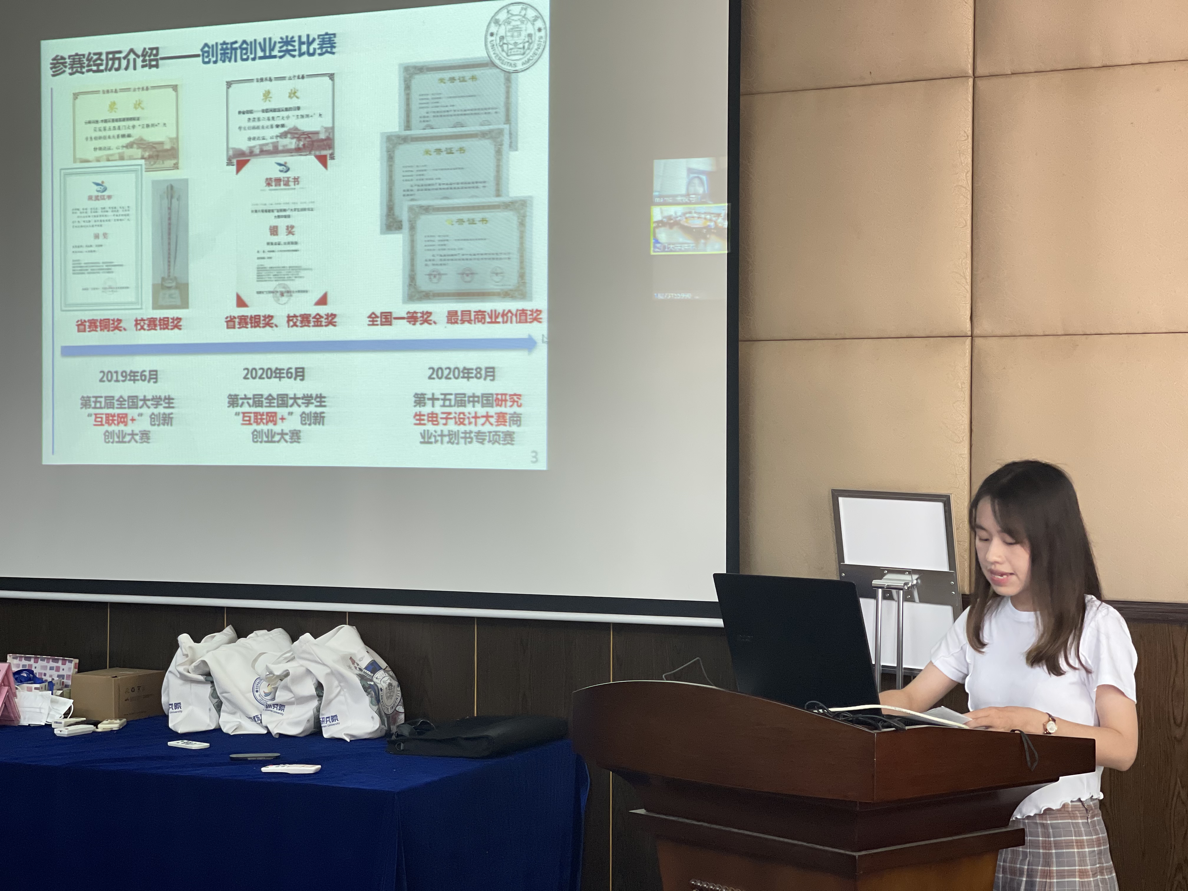 “竞赛之星”洪书晴同学主要分享了自己参加的诸多竞赛并斩获各种奖项的经历,并详细介绍了如何在创新创业类的比赛中脱颖而出,如何去打磨自己的参赛作品等,这些宝贵的比赛经验可以让同学们未来参加竞赛少走弯路。