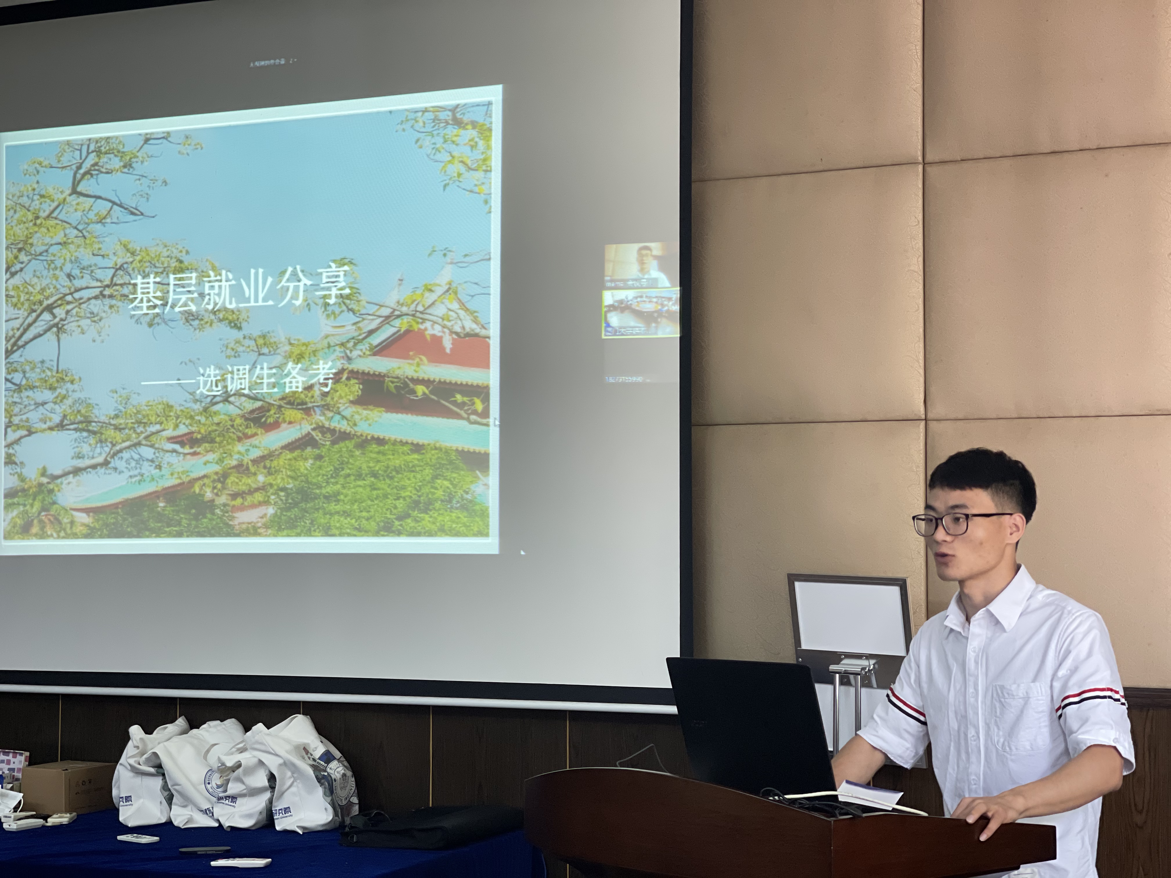 “公考之星”陈新同学分享了自己参加公考的备考经验,通过介绍选调生的概念以及各地定向选调的政策,并且详细介绍了江西和上海等地的笔试和面试经验,为有考公想法的同学指出了一条明路。