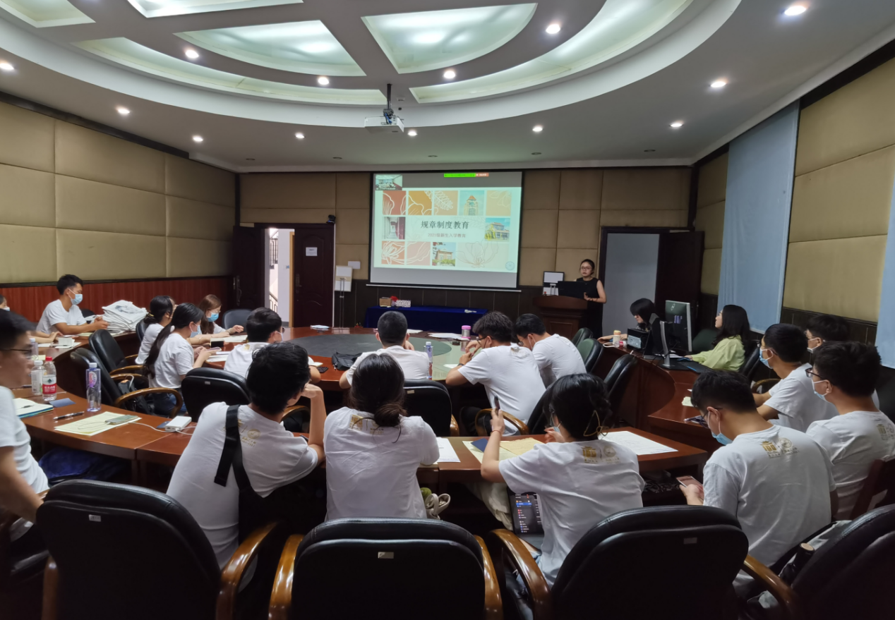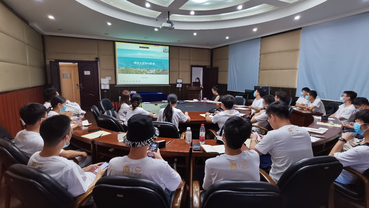 随后,新生们在研究院邱媛、颜彦洋、胡菲娜和图书馆林静老师带领下,开始了以校史校情、党史国情、规章制度、诚信教育、学籍管理、学位管理、图书馆资源及服务、实验室安全管理为主题的学习。