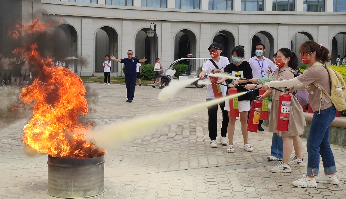 9月12日,新生们分别在各自校区参加化学化工学院、药学院组织的新生消防实操演练,学习了灭火器、消防沙、灭火毯等消防用具的使用办法。