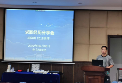 分享会特邀了研究院2021届毕业生,目前就职于西北工业大学任职教授的陈睿豪(2018级博士生)、就职于江西井冈山经济技术开发区任职基层公务员的陈新(2018级硕士生)。两位优秀毕业生通过线上方式,向与会师生详细分享了自己的求职心得、工作感受,得到学弟学妹们的热烈相应。
