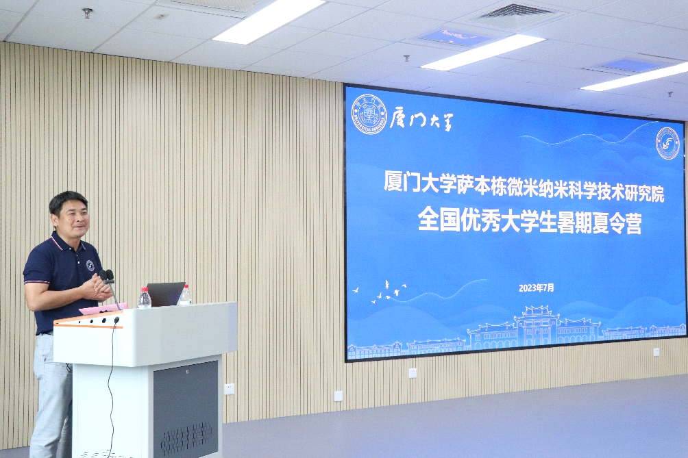 首先,洪明辉院长对营员们的到来表示热烈欢迎,并介绍了萨本栋微米纳米科学技术研究院的基本情况,重点介绍了研究院瞄准前沿的动态视野、卓越的科研条件及雄厚的师资力量,期望营员们能通过本次夏令营有收获和进步,并期待与同学们明年九月在厦园再会。