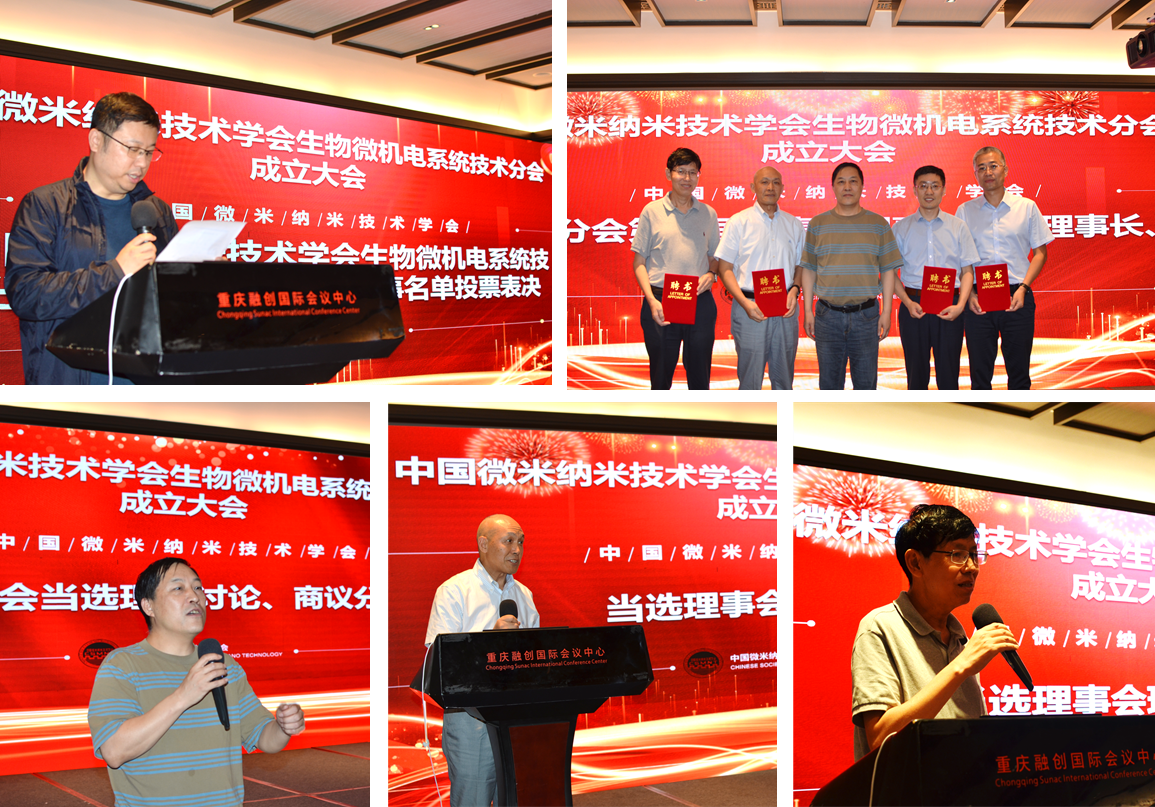 大会期间,经过参会代表的无记名投票选举,首先产生了来自全国48家单位的72名分会理事。全体理事再选举产生了生物微机电系统技术分会第一届理事会领导,由孙道恒教授担任分会理事长,由彭年才教授、陈云飞教授、李志宏教授、刘军山教授和韦学勇教授担任副理事长,同时韦学勇教授兼任秘书长,陈健研究员、吴德志教授担任副秘书长。随后黄庆安教授、孙道恒教授、彭年才教授、刘军山教授和韦学勇教授分别围绕生物微机电系统技术领域的发展、分会的发展规划等发表了观点和建议。