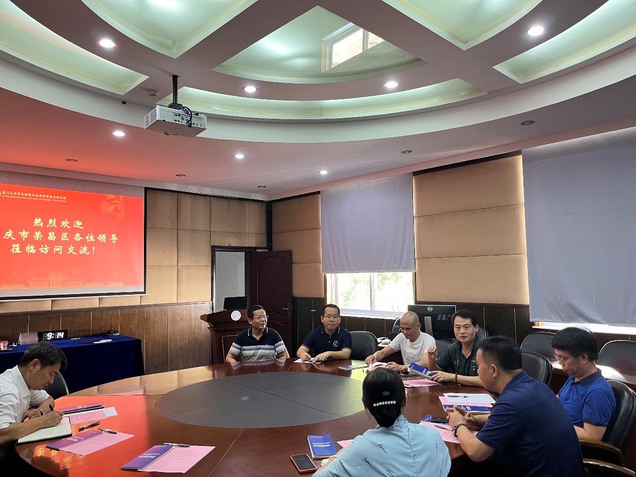 2023年10月20日由厦门大学1988级校友、福建省四川商会执行秘书长谢筠积极对接家乡政府单位重庆市荣昌区交通局邹光武局长,夏定文副局长一行造访研究院考察交流。