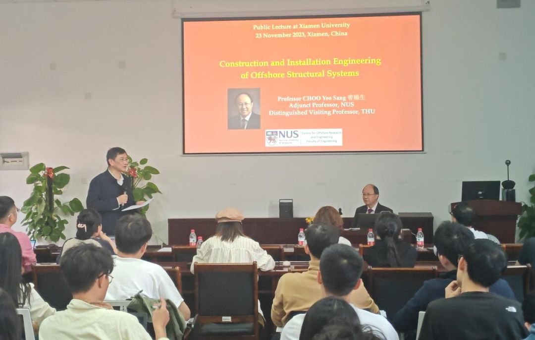 2023年11月23日下午,清华大学杰出访问教授、新加坡国立大学终身教授曹耀生(CHOO Yoo Sang)教授应邀访问萨本栋微米纳米科学技术研究院,并出席厦门大学工程科学前沿论坛(第一期),在翔安校区文宣楼作题为“海洋结构系统安装工程(Construction and Installation Engineering of Offshore Structural Systems)”的专题讲座。讲座由我院院长洪明辉院士主持,80余位师生参加。