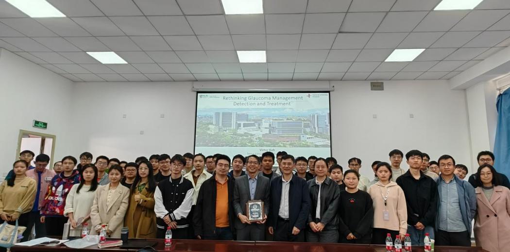 7日上午,Victor教授出席厦门大学工程科学前沿论坛、萨本栋微纳院学术讲座,在翔安校区文宣楼作题为“青光眼的诊断和治疗(Reimagine Glaucoma Diagnosis and Management)”的专题讲座。讲座由厦门大学工程技术学部主任、萨本栋微米纳米科学技术研究院院长洪明辉院士主持,萨本栋微米纳米科学技术研究院、航空航天学院、医学院近60余位师生参加。