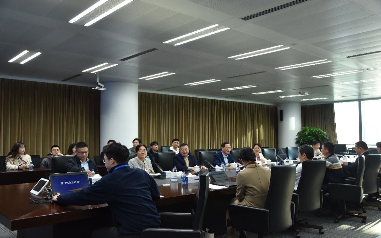 为深入贯彻落实习近平总书记关于高校毕业生就业工作重要指示精神,拓宽毕业生就业渠道和资源,加强与用人单位的交流合作,1月3日下午,厦门大学党委常委、副校长邱伟杰,航空航天学院党委书记廖志丹、国内合作办副主任吴喜平、航空航天学院党委副书记林蔚、航空航天学院及萨本栋微米纳米科学技术研究院师生代表一行赴厦门钨业股份有限公司(以下简称厦门钨业)拓岗调研。厦门钨业党委书记、董事长黄长庚,党委副书记、总裁吴高潮,办公室主任王玉龙,技术中心副主任范超颖,人力资源管理中心薪酬激励高级经理赖宝珍等接待了调研团。