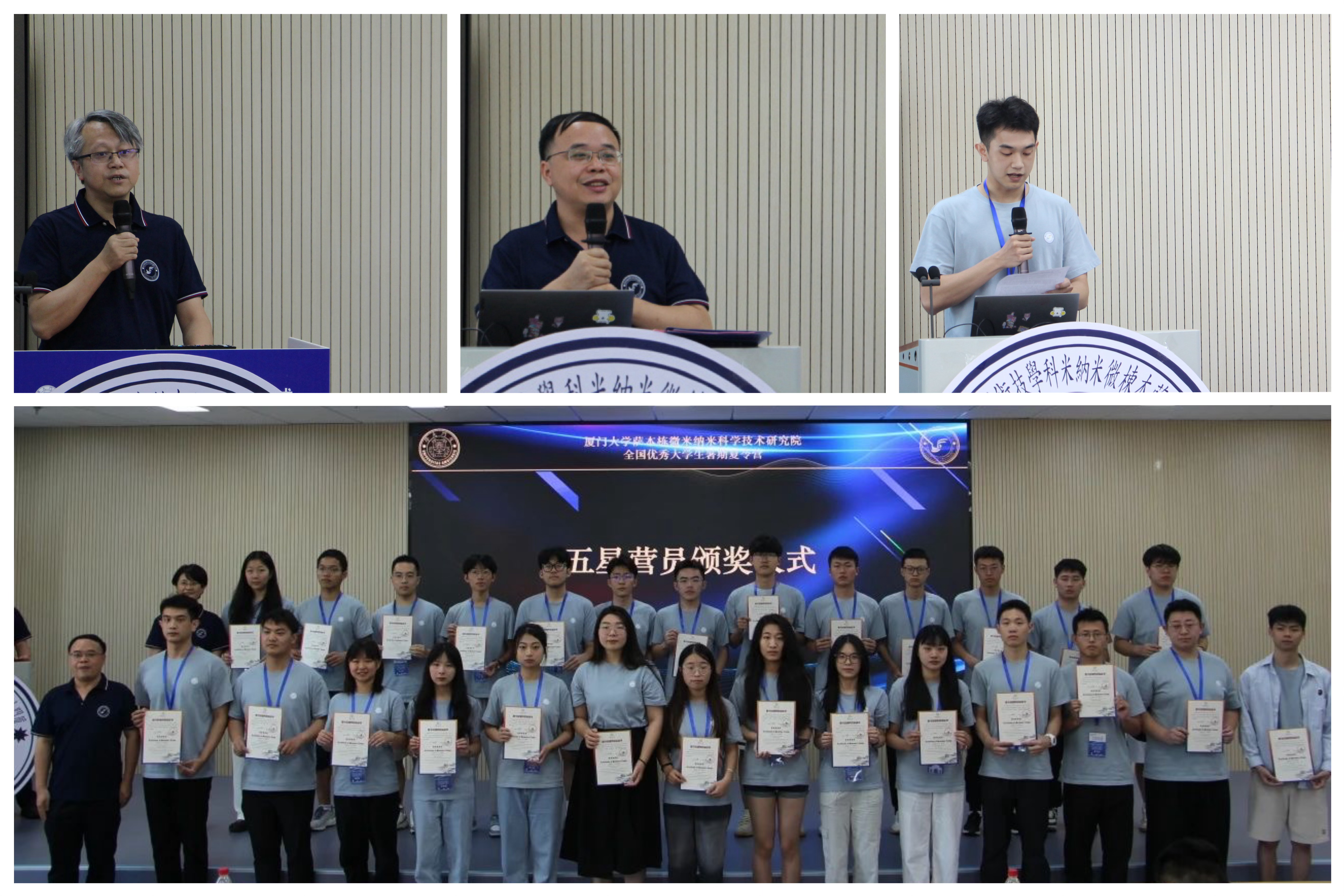 7月12日上午,夏令营在结营仪式中圆满结束。仪式由研究院王凌云教授主持。活动伊始,一段由志愿者用心制作的营期回顾视频带大家重温了五天四夜的厦园回忆。接着,周伟副院长致辞,充分肯定了营员们的优秀表现,向为本次夏令营筹备工作付出辛勤努力的师生表示感谢,向全体营员表达美好祝愿,鼓励青年学子应自信自强、守正创新、踔厉奋发、勇毅前行,早日成长为国家和社会发展亟需的高素质创新人才。随后,研究院表彰一批优秀志愿者,由张增星助理教授和罗涛助理教授颁发证书。在激动人心的气氛下,王凌云教授公布本次夏令营获得三星营员和五星营员的人员名单。由周伟副院长、李静教授一同为五星优秀营员颁发证书;由王少杰副教授、高立波副教授一同为三星优秀营员颁发证书。