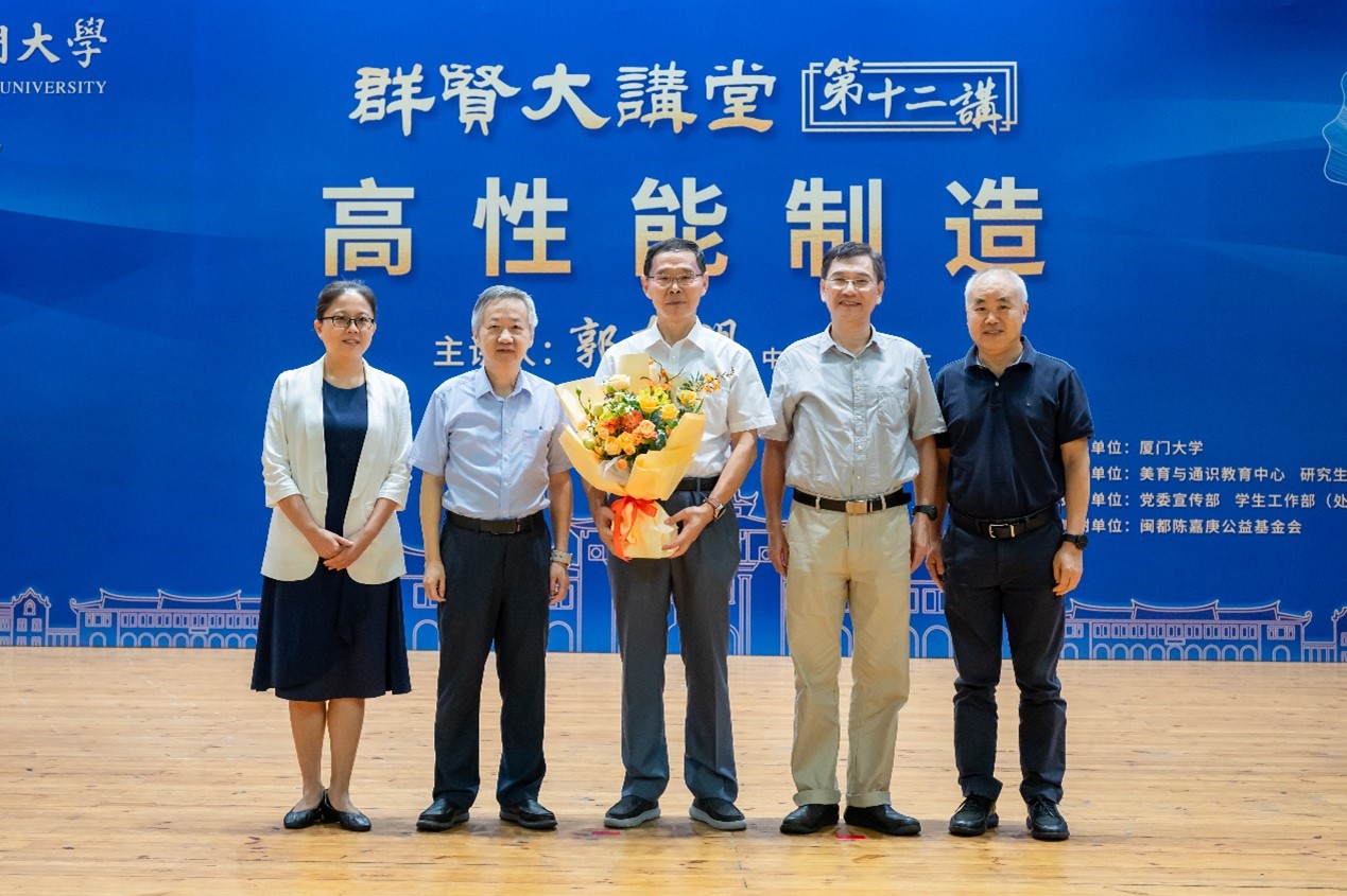 9月19日下午,厦门大学“群贤大讲堂”第十二讲在思明校区科学艺术中心音乐厅开讲。中国工程院院士、大连理工大学原校长郭东明教授带来了主题为“高性能制造”的精彩讲座。厦门大学校长张宗益教授为郭东明院士颁发了“群贤大讲堂”讲座纪念牌;中国科学院院士、厦门大学田中群教授,天津大学王国彪教授,厦门大学师生代表等五百余人出席;大讲堂由新加坡工程院院士、萨本栋微米纳米科学技术研究院院长洪明辉院士主持。