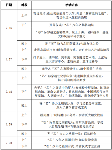 活动时间暂定于7月16日-20日举行,活动期间志愿者入住思明校区。