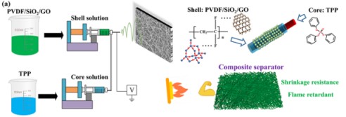 (用于制造TPP@PVDF/SiO2/GO纤维的同轴静电纺丝工艺示意图)