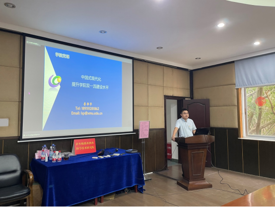 李书记的报告主题是《中国式现代化 提升学院双一流建设水平》,报告围绕“从1到9党的二十大报告要点回顾”、“什么是中国式现代化”、“学院发展新机遇”、“学院双一流建设设想”四个方面展开。李书记强调今后学院和研究院必须进一步深入贯彻落实党的二十大精神,以学科评估为导向,统一认识,强化制度建设,凝聚校友力量,助力学院发展,把服务国家现代化全局与服务区域产业转型升级紧密结合起来,坚持“特色强、质量高、研究型”内涵定位,把党的二十大精神落实到教学科研等各方面,不断把“双一流”建设推向更高水平。