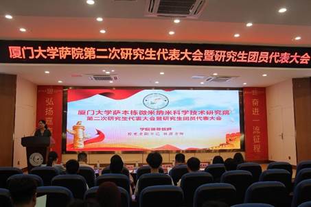 7月23日中午,厦门大学萨本栋微米纳米科学技术研究院第二次研究生代表大会暨研究生团员代表大会在航空航天学院大楼547报告厅隆重举行。院党委副书记林蔚,团委书记郭江淮,团委副书记倪建超和董佳闻,学生兼职团委副书记、辅导员于波,学生兼职团委副书记张思韫,辅导员陈锃琰,各兄弟学院研究生会主席团成员,各班级研究生代表等参加了本次大会。大会由萨本栋微米纳米科学技术研究院第一届研究生会执行主席沈锐敏主持。