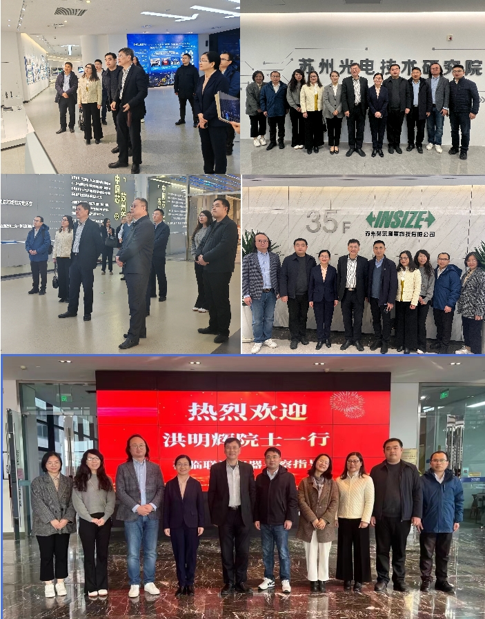13日,洪院长带队前往苏州高新区。一行人在苏州高新区委组织部(统战部)部长吕建林陪同下参观了苏州高新区展示馆;随后,在苏州市光子产业科技镇长团团长马春兰、狮山商务创新区科技人才办主任刘旭鹏陪同下依次参访了苏州光电技术研究院、苏州联讯仪器股份有限公司、苏州英示测量科技有限公司和苏州市集成电路创新中心等。