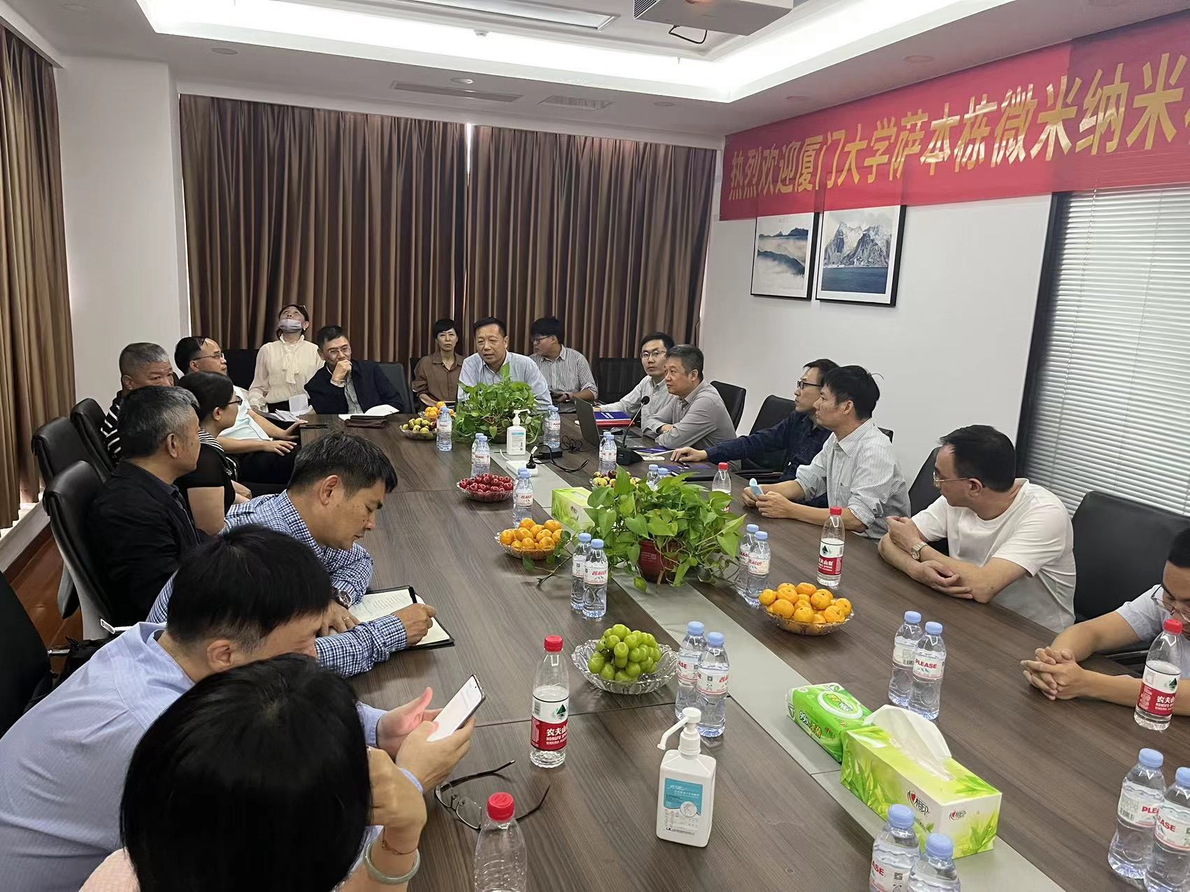洪明辉院长一行首先前往我院孟宪震校友创办的优质企业—济南冠泽医疗器材有限公司调研交流。孟宪震校友作为山东省厦门大学校友会会长,对洪院长一行的到访表示热烈欢迎。公司黄海波总工程师介绍了冠泽医疗自主研发的全院影像PACS系统产品和第一代医学影像云平台;公司刘泉经理以三甲医院应用案例举例向大家介绍了医学影像自助打印系统的硬件工作原理和产品方案。孟董事长表示,企业对市场有较高敏感度,但在软件研发等方面并不擅长,希望与高校建立良好合作。会上双方就院企合作平台建设、光学医疗检测等方面进行了深入的交流讨论。