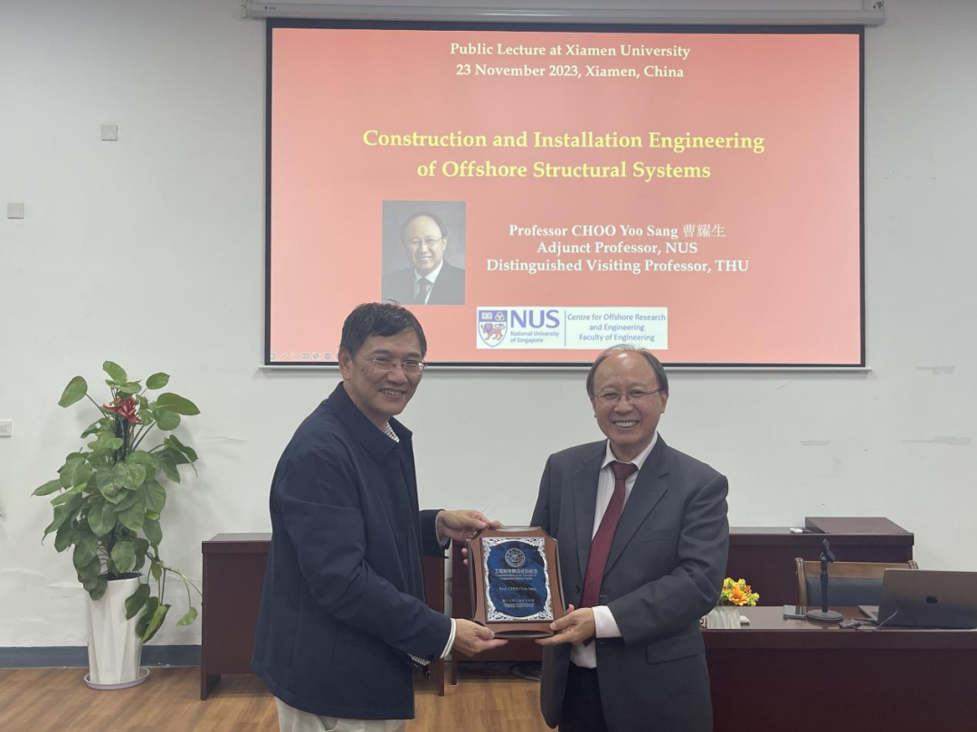 2023年11月23日下午,清华大学杰出访问教授、新加坡国立大学终身教授曹耀生(CHOO Yoo Sang)教授应邀访问萨本栋微米纳米科学技术研究院,并出席厦门大学工程科学前沿论坛(第一期),在翔安校区文宣楼作题为“海洋结构系统安装工程(Construction and Installation Engineering of Offshore Structural Systems)”的专题讲座。讲座由我院院长洪明辉院士主持,80余位师生参加。