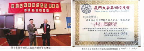图3 苏林华学长获厦门大学美洲校友会杰出贡献奖