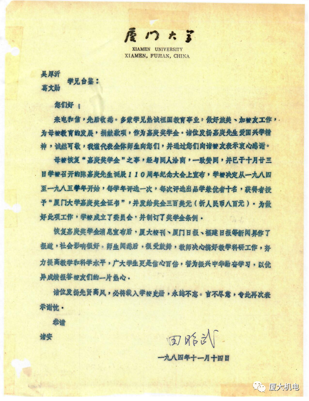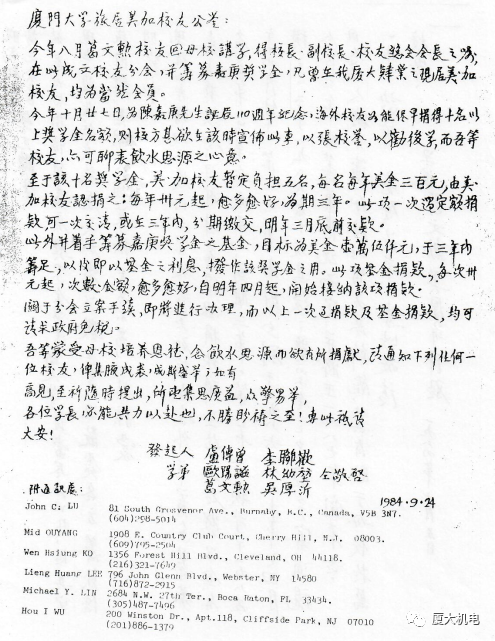 厦门大学旅居美洲校友嘉庚奖学金募捐公告