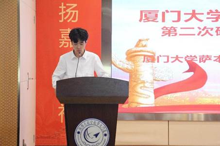 值此萨院第二次研究生代表大会暨研究生团员代表大会召开之际,厦门大学研究生会主席团成员刘阳代表校研究生会录制了贺信视频。刘阳首先代表校研究生会对大会的召开表示热烈祝贺;对长期关心、支持萨院学生工作的领导、老师表达了深深的敬意。随后,刘阳肯定了萨院第一届研究生会、团总支过去一年的工作成果;并鼓励萨院新一届学生干部以完善制度、继承发扬、合作创新、塑造形象为落脚点,找准价值定位,打造更多品牌活动。